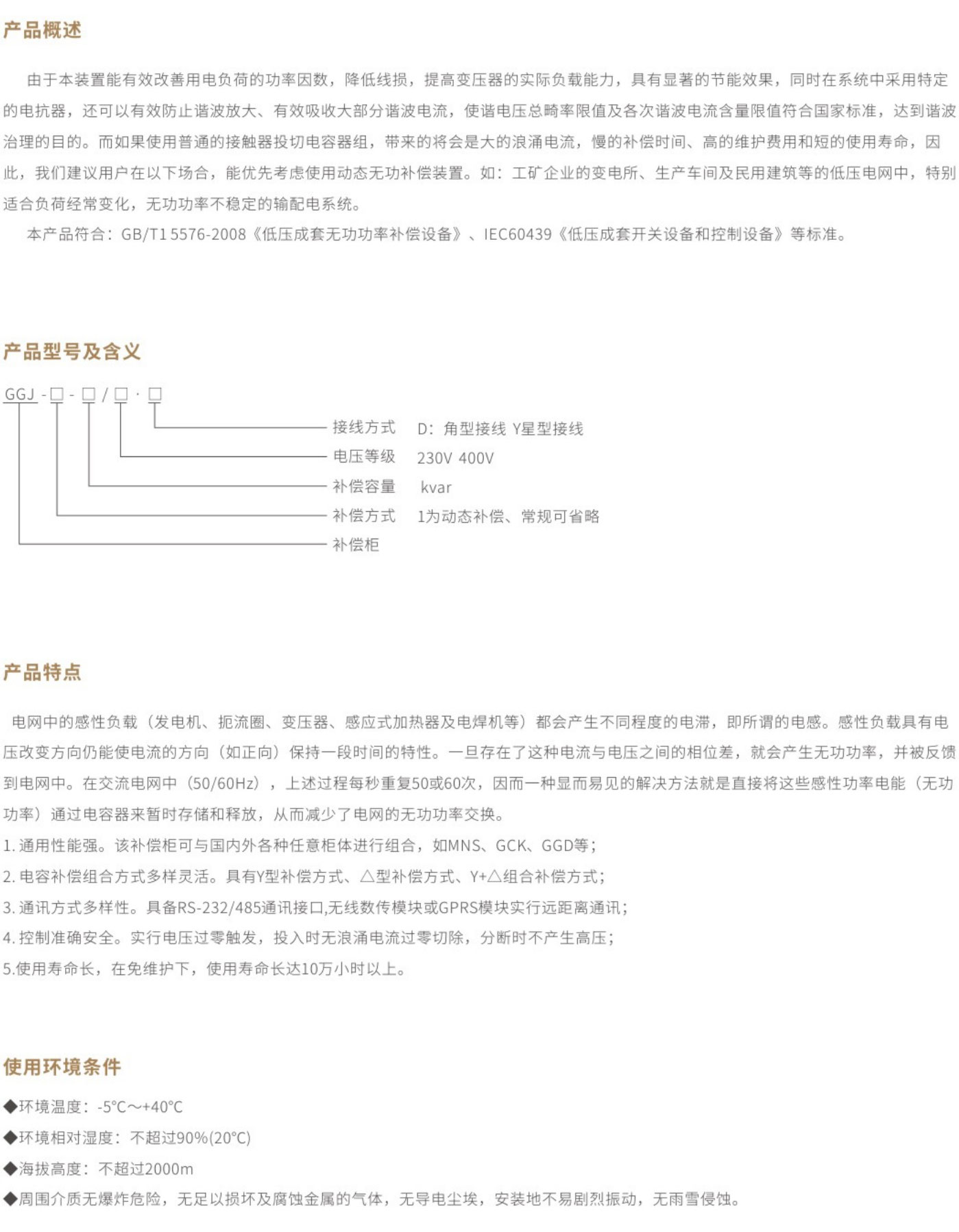 GGJ系列低壓無功功率補償裝置