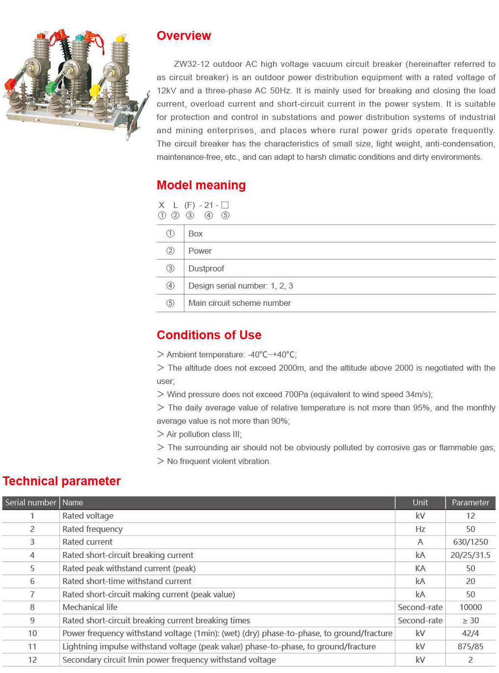 ZW32-12F Outdoor AC high voltage demarcation vacuum circuit breaker