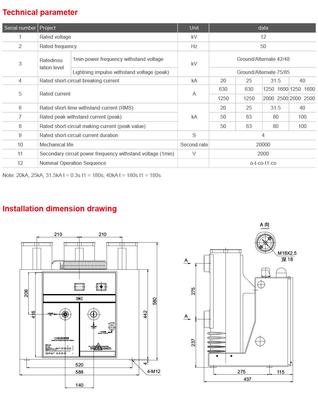 QYV(VS1)-12 Fixed indoor high voltage vacuum circuit breaker